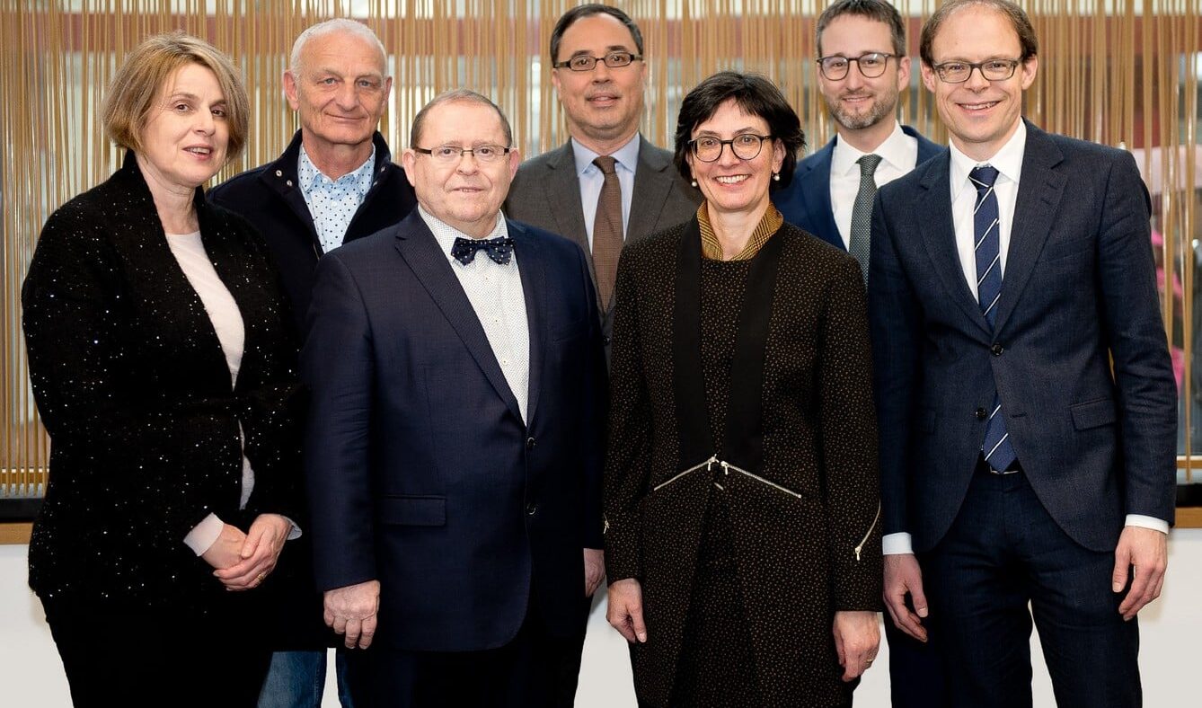 Foto: © RailCom / Didascalia dell’immagine: Il consiglio di amministrazione della RailCom (da sinistra a destra): Anna Ciaranfi Zanetta (membro), Werner Grossen (membro), Peter Bösch (membro), Giuliano Montanaro (membro), Patrizia Danioth Halter (presidente), Christof Böhler (responsabile del settore), Prof. Dr. Markus Kern (vicepresidente)